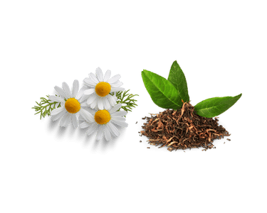 Chamomile and green tea calm, soothe, and protect the skin with natural antioxidants.